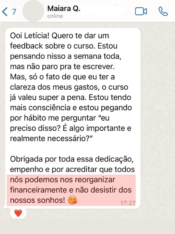 Desde então imergi no universo das finanças pessoais. Me formei em Administração, comecei minha carreira em um grande banco e logo avancei para me tornar consultora financeira. Hoje conto com 5 anos de experiência na área, já tendo transformado a vida de mais de 3.000 pessoas para melhor.