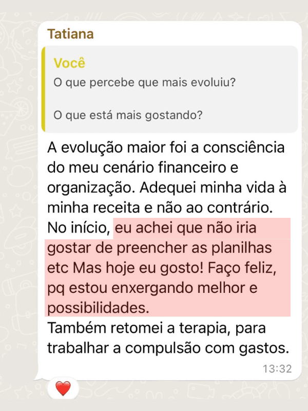 Através da metodologia que desenvolvi ao longo de anos, levar uma organização financeira que funciona, que foi testada e validada. Do descontrole para a organização financeira, você só precisa fazer a Travessia.